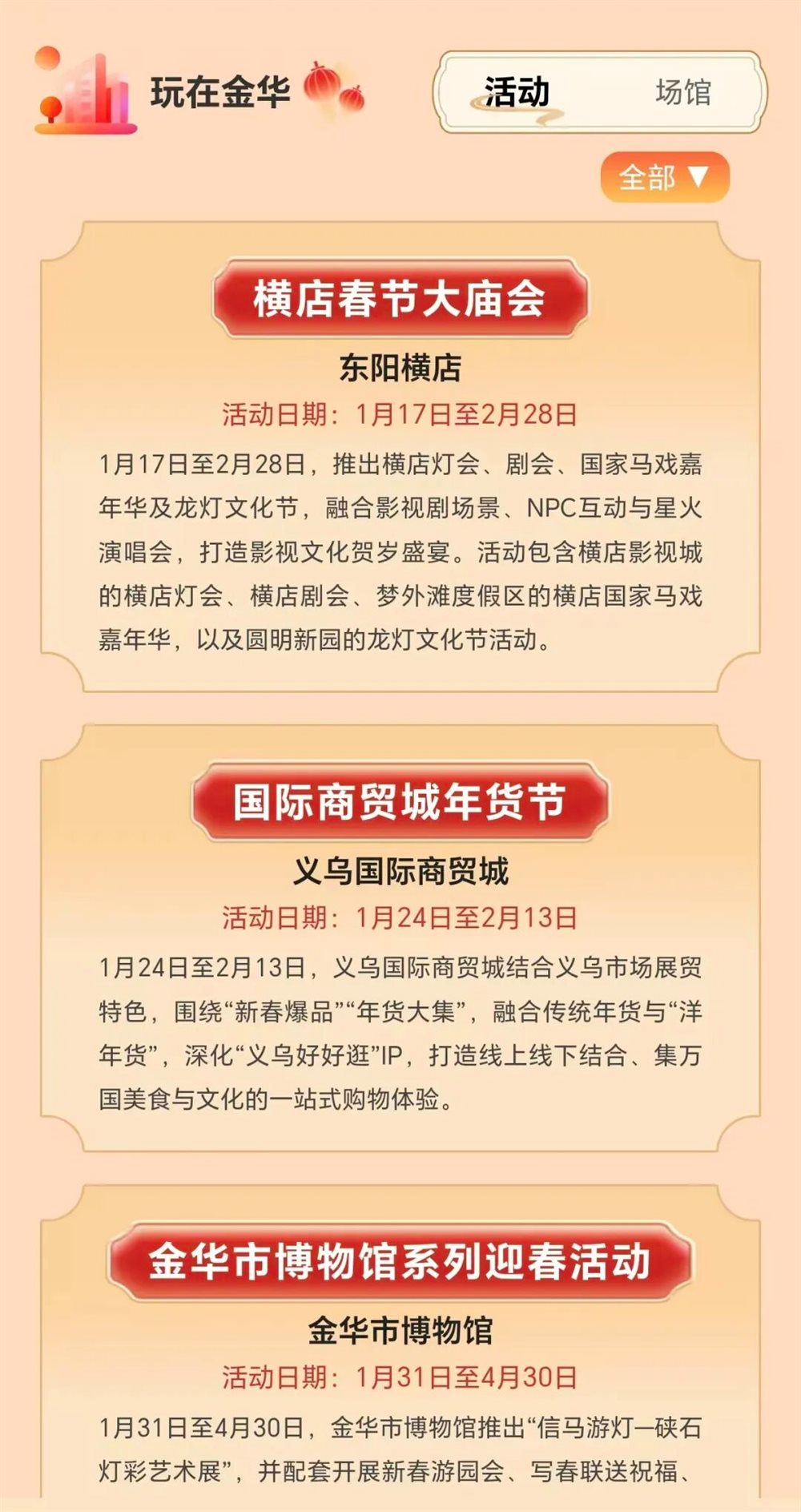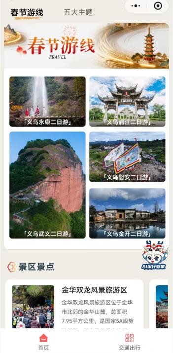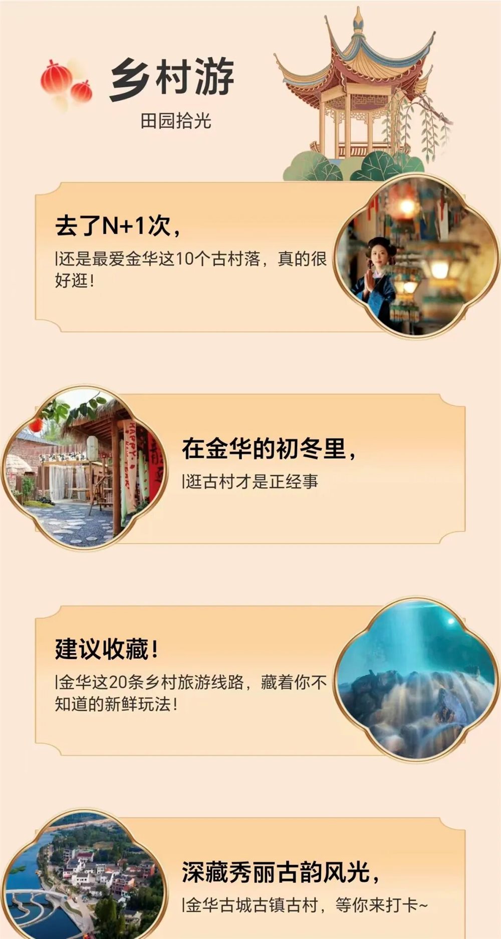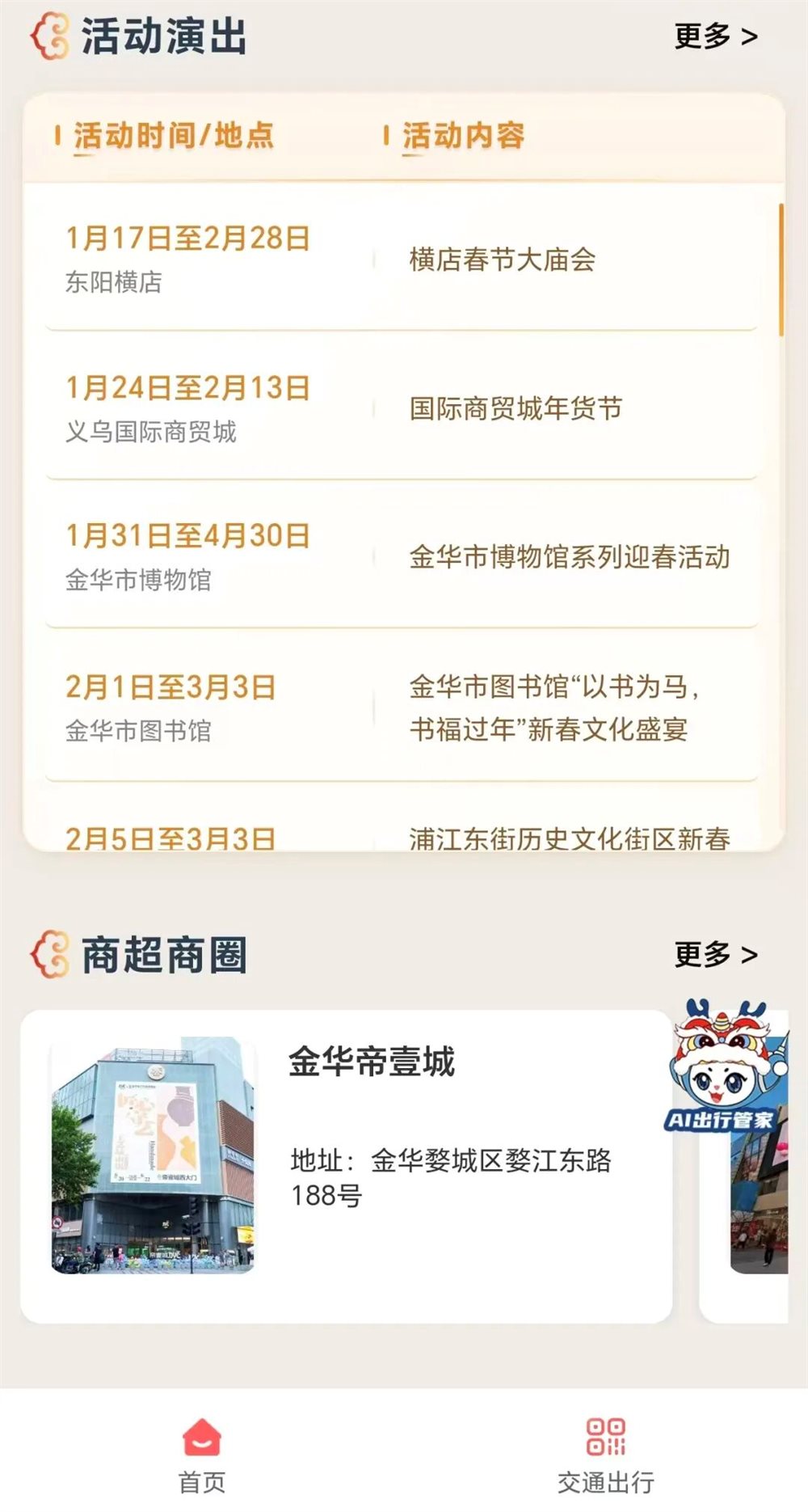 “金华畅游码”围绕春节出行消费全场景,精心设置了游在金华、购在金华、住在金华、玩在金华、吃在金华五大功能版块,为广大市民、游客出行提供便捷、优质选择。