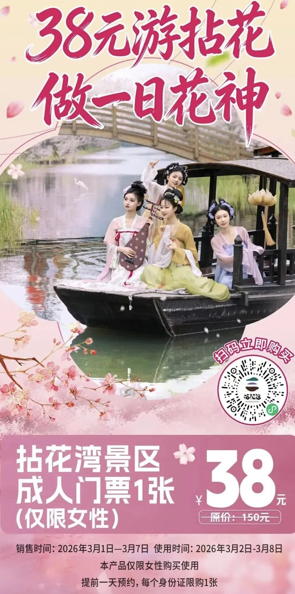 成人门票(仅限女性):38元(原价150元)