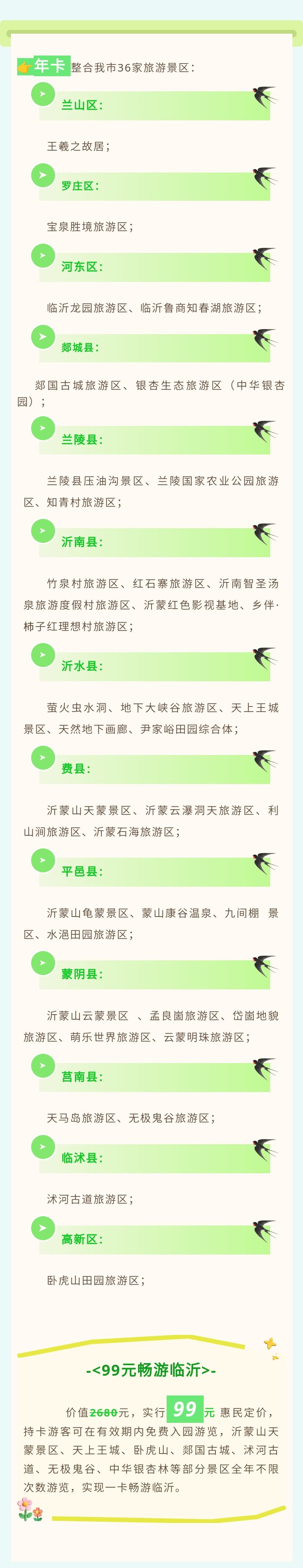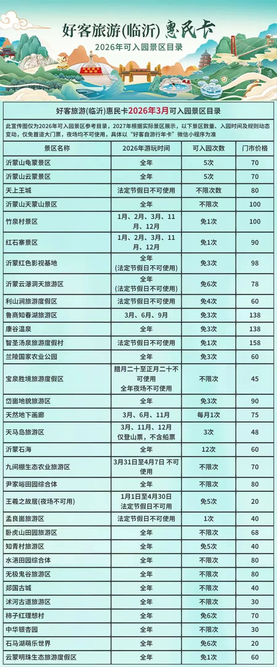 为充分释放我市文旅消费潜力,满足人民群众高品质文旅生活需求,引导广大市民发现家乡之美、体验身边精彩,重磅推出 “临沂人游临沂”旅游惠民年卡,带你一卡畅游临沂,解锁家乡的无限魅力!