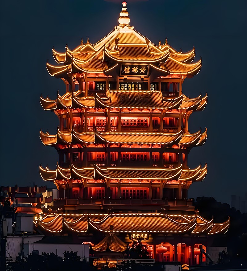 全球汉服出行日,“夜上黄鹤楼”流光溢彩