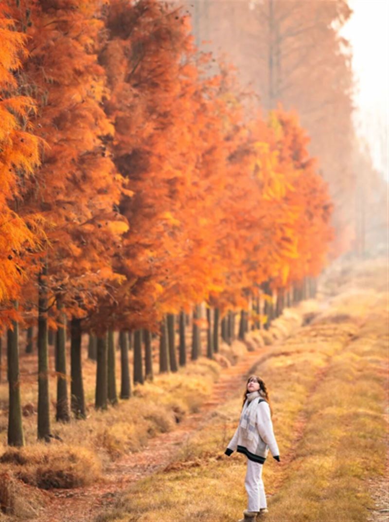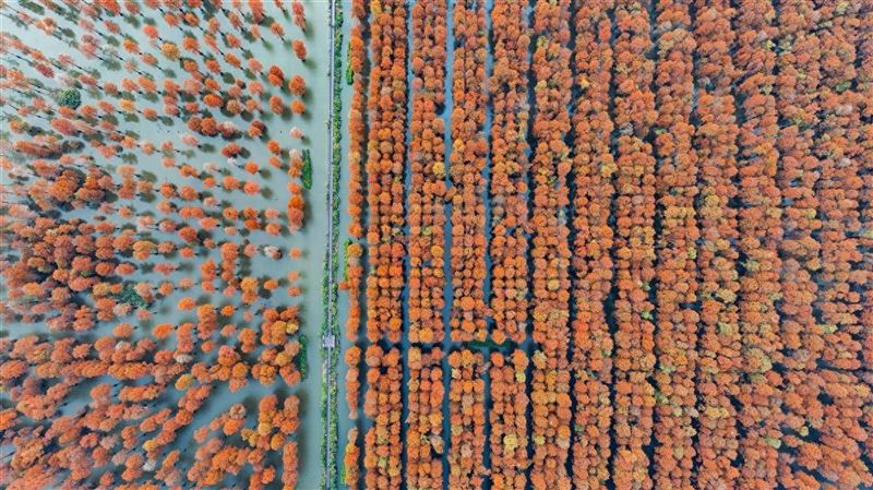 武汉涨渡湖湿地池杉红遍宛如童话世界