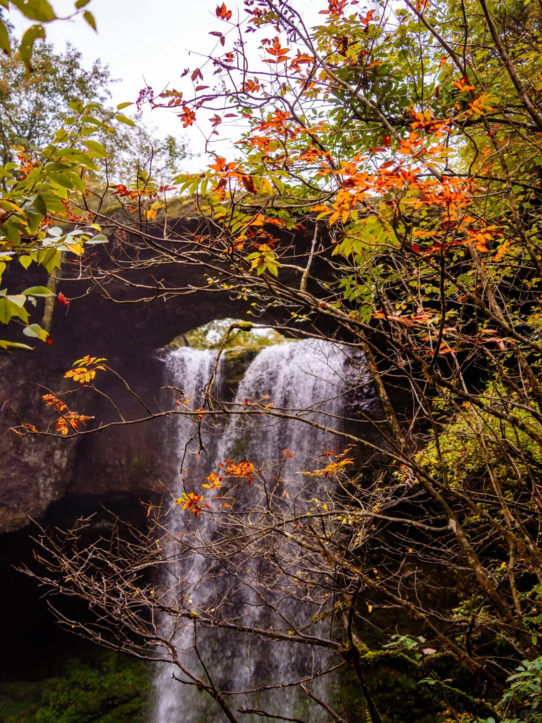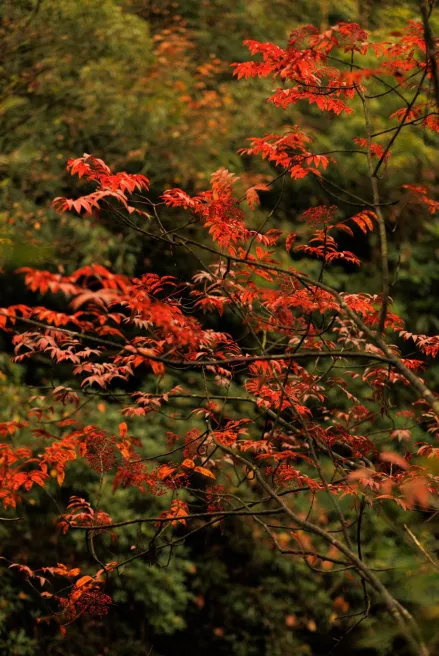 2000米的海拔差也使得天生桥的彩林有延时,最初从山顶开始蔓延,层层递进,一日一变,到秋季正是绝色。