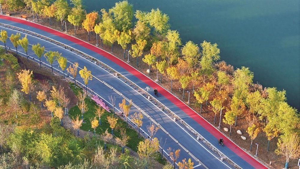 阅海国家湿地公园里,芦苇褪去青涩,换上金黄的盛装,在秋风中摇曳生姿。树木的叶子或红如枫火,或黄似琥珀,与湛蓝的湖水相映成趣。人们骑行在环湖步道上,车轮碾过落叶的沙沙声与鸟鸣交织,仿佛一首悠扬的秋日交响曲。