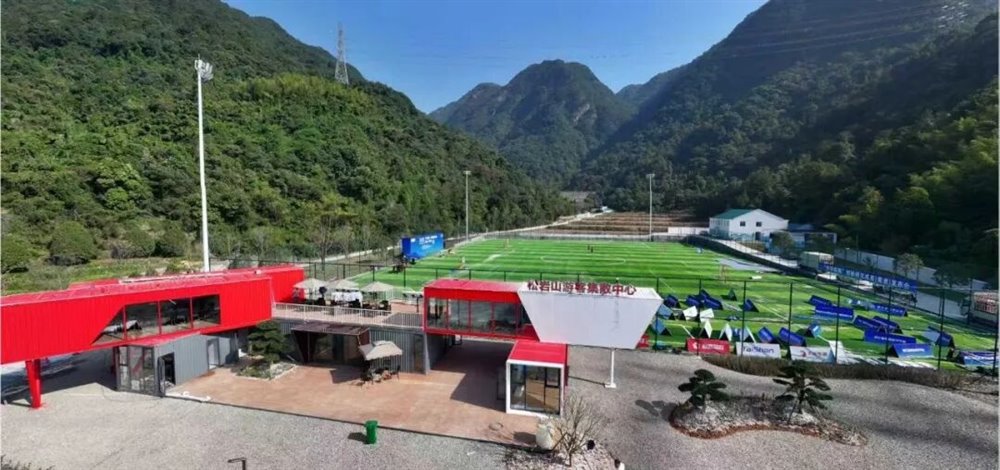当工业旧厂房遇见绿水青山,当足球运动碰撞田园风光。黄岩·松岩山郊野足球公园的诞生,源于一次“点石成金”的创意——利用“两山”绿色转化资金,将松岩山脚闲置的工业旧厂房盘活,褪去机器的轰鸣,换上草木的清香。项目以“体育+生态+商业”为内核,将带动当地村庄集体经济年增收,让“绿水青山”真正变成了“金山银山”,成为黄岩践行“两山”理论的生动注脚。