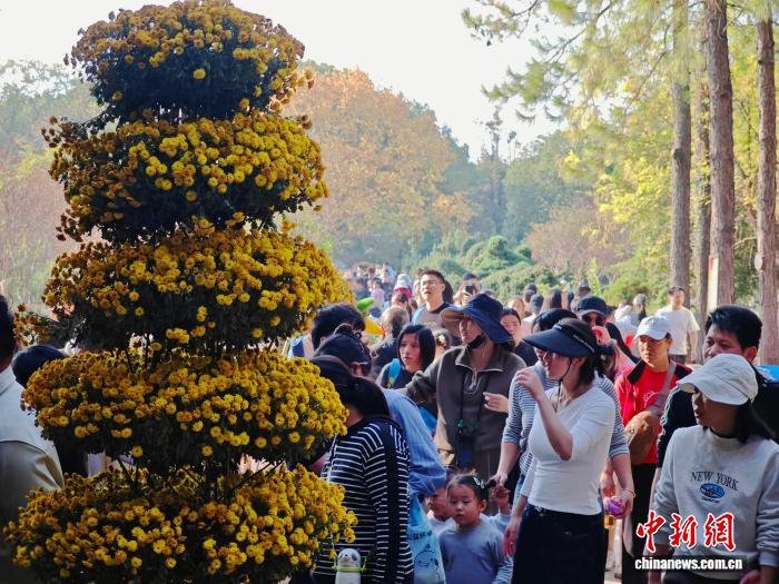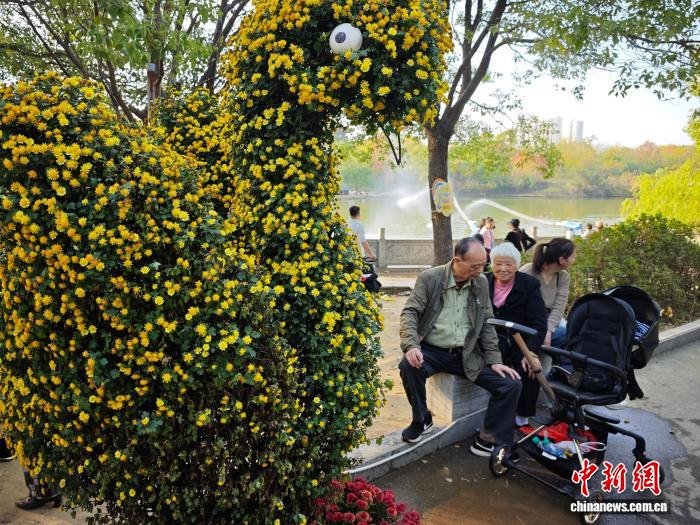 11月16日,南昌市青山湖区的天香园景区菊花展迎来了众多游人前往观赏。超过三百个品种的一万多株菊花正竞相绽放,其中包括墨菊、绿牡丹、凤凰振羽等十大名贵菊花品种。150余组菊花装扮的动物造型更是吸引了孩子们的目光,令人徜徉园中,沉醉于这片菊香花海。记者 华山 摄