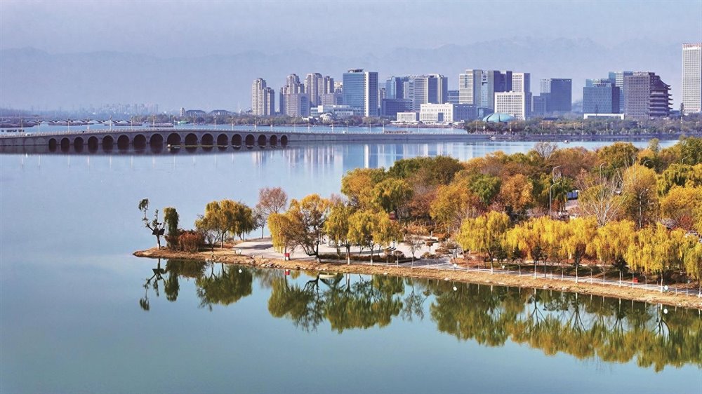 初冬的银川,河湖湿地美如画卷(11月12日摄)。