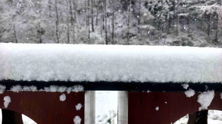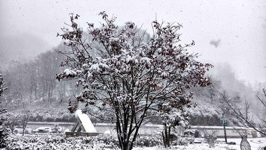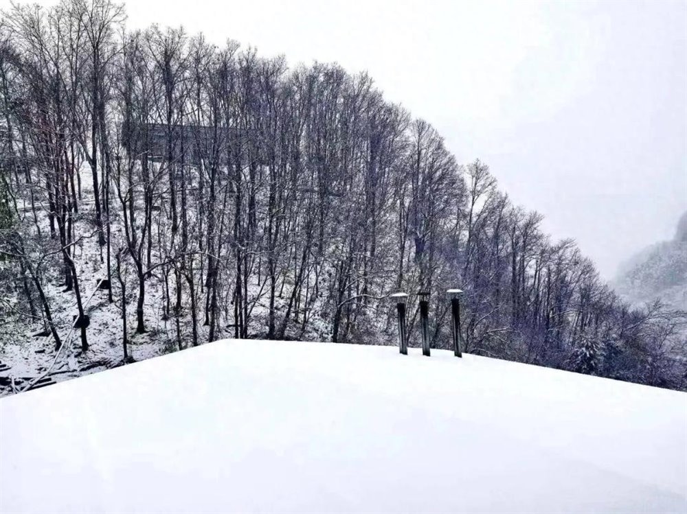 11月17日,湖北保康县尧治河村迎来今冬首场降雪。群山村落一夜白头,玉树琼枝缀满山坡,晶莹冰雪与古朴民居相映成趣。纷扬的雪花为秋色未尽的大地披上银装,呈现冬日的静谧诗意。(湖北日报客户端通讯员 袁俊耀 彭程张照)