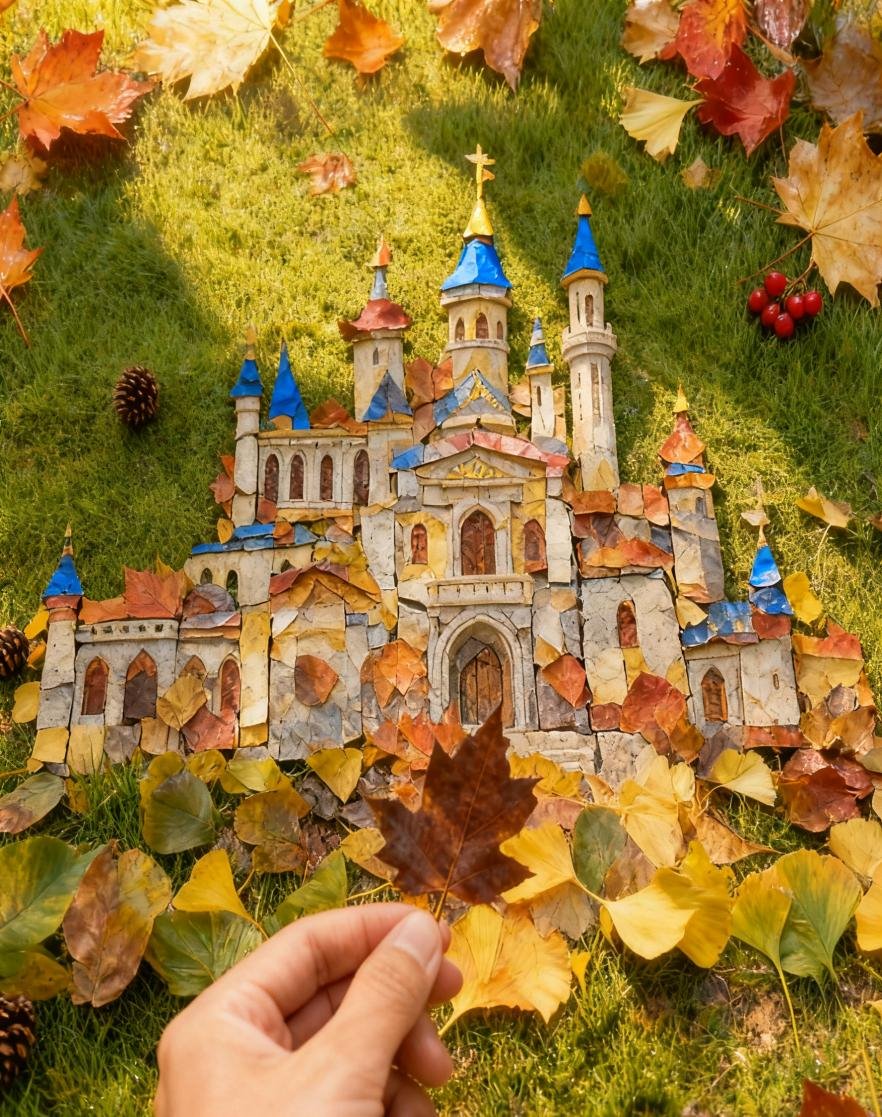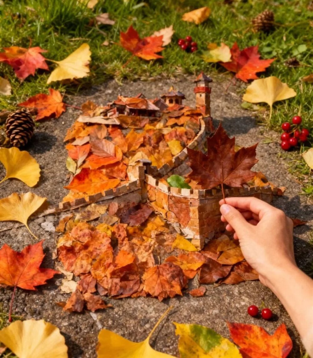 有人将“捡秋”成为i人和城市牛马的精神疗愈,没有限制,随地大小捡。以落叶为笔、大地为纸,拼出仙境蓬莱。