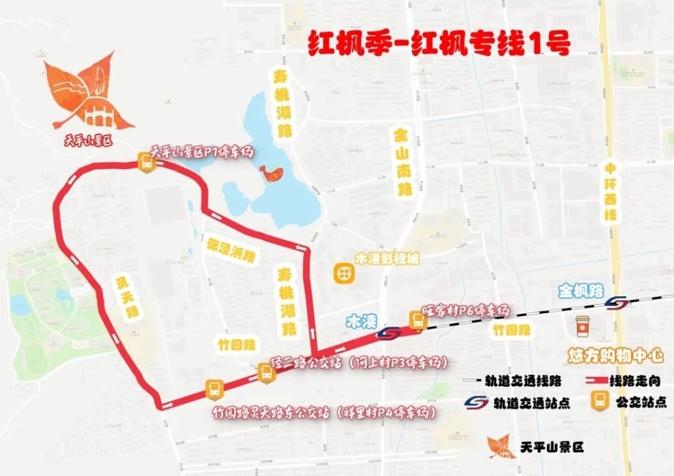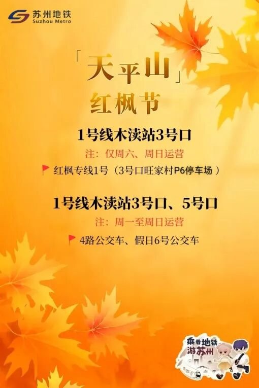 路线:1号线木渎站3号口出站—旺家旺村P6停车场—天平山景区P1停车场