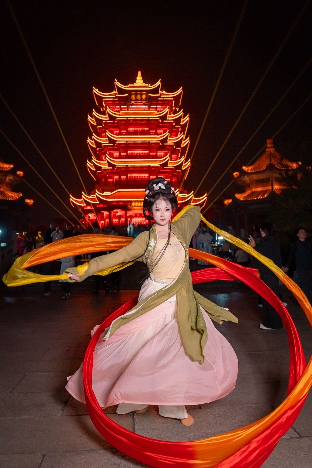 华灯初上,霓裳翩跹。11月22日是全球汉服出行日,黄鹤楼公园里一场以“知音楚韵・衣启华章”为主题的汉服游园会在此启幕。汉服爱好者们身着各式传统服饰,共同开启了一场穿越时空的文化雅集,为初冬的黄鹤楼绘就了一幅流动的国风画卷。