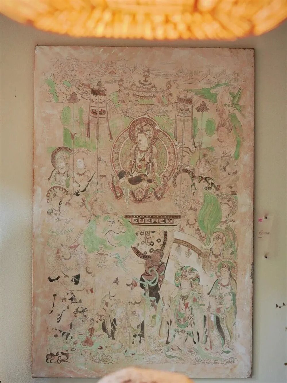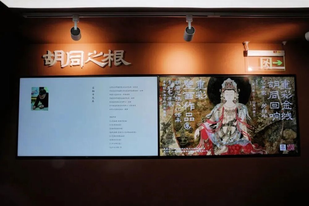 作为文化体验的核心区域,二层的艺术展览与研学空间堪称“移动的文化课堂”。目前重磅呈现的“重彩金线·胡同回响——敦煌到法海寺的千年壁痕”特展,汇集了苏柏斗先生近十年的匠心之作。从法海寺的精丽线描到敦煌的苍茫意境,光束下的每一笔色彩都在诉说千年故事。