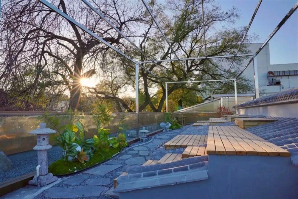 待到风和日暖时,或许您还可以再往上走,去看看胡同顶层的天空。在顶层露台上,凭栏而立,青砖灰瓦的胡同肌理与远处的现代楼宇相映成趣,看鸽群掠过成片的屋瓦,随手一拍就是“古今同框”的大片。