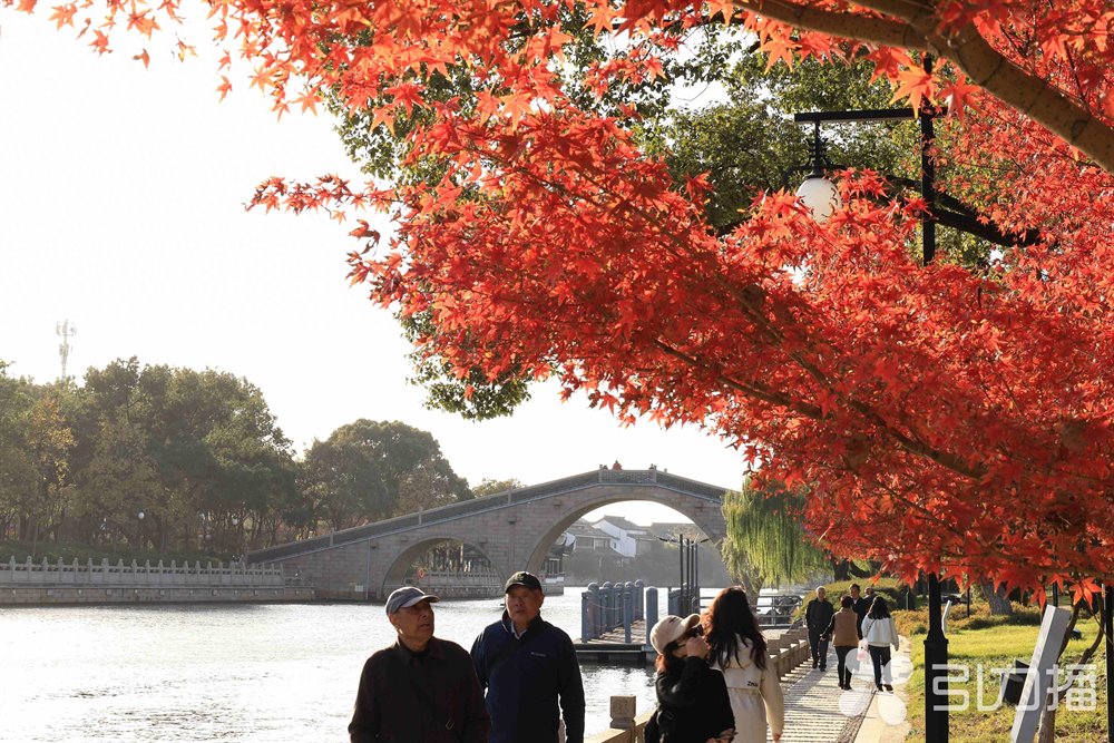 苏州环古城河健身步道蟠龙桥至人民桥段两侧,枫树正悄然换上红装,远远望去,宛如一条蜿蜒流淌的“火焰走廊”,在微凉的风中熠熠生辉,让整座城市充满诗意。今天(11月27日),记者在这里看到,市民和游客正纷纷前来打卡这条镶嵌在古城脉络中的“长廊”。