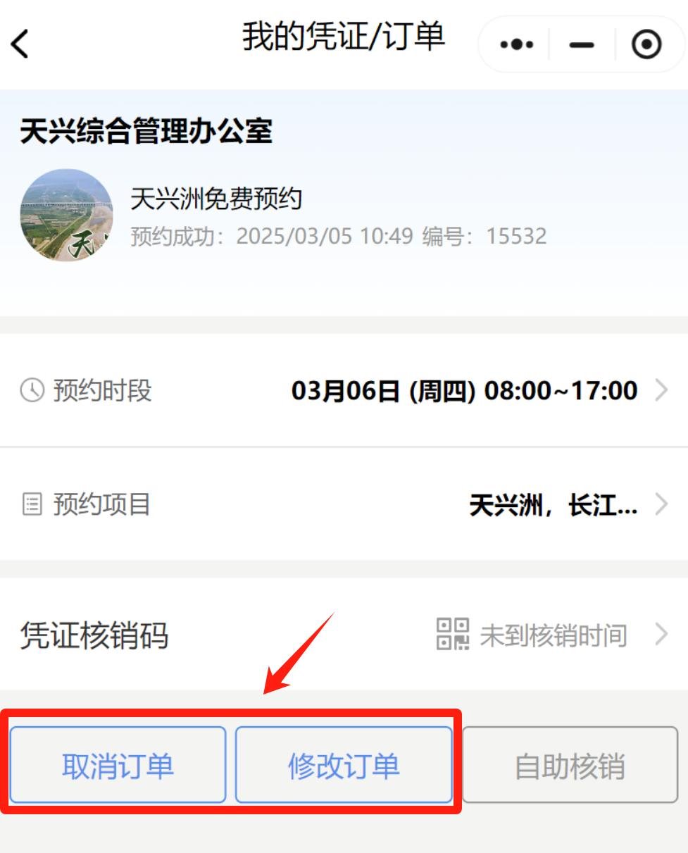 1. 进入天兴洲预约小程序,选择预约日期、时间,点击【确认】;