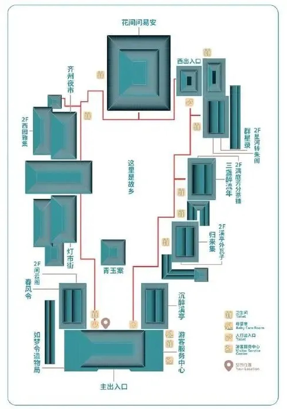 这里是城市建筑,更是凝固的艺术。在空间布局上,采用环形建筑群设计,围绕中央庭院有序分布各功能区。东区规划为展览空间与游客服务中心,北侧与西侧设有大小剧场及配套用房,南区则布局特色餐饮与茶室等休闲业态,形成高效便捷的游览动线,营造移步换景的沉浸氛围。