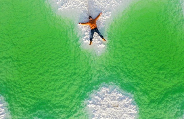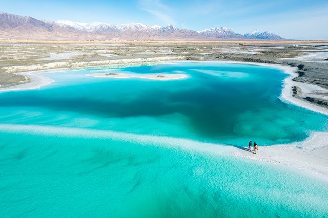 大柴旦翡翠湖位于青海省海西蒙古族藏族自治州大柴旦镇,原是大柴旦化工厂盐湖采矿队采矿区。由于矿石所含矿物质浓度不同和天气变化,湖水呈现出深蓝、翠绿、黄色等多彩颜色,犹如一颗颗镶嵌在大地上的翡翠。