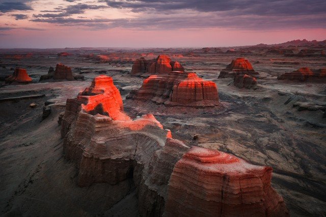 乌尔禾魔鬼城位于新疆克拉玛依市乌尔禾区,是中国最大的雅丹地貌群,被《中国国家地理》评为“中国最美三大雅丹”之一。这里是由风沙侵蚀形成的奇特地貌,各种形状的土丘和岩石在风中发出怪声,似鬼哭狼嚎,故得名“魔鬼城”。