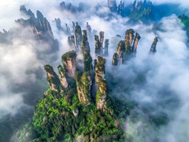 张家界国家森林公园位于湖南省西北部,是中国第一个国家森林公园,以其独特的石英砂岩峰林地貌闻名于世。这里三千多座石峰拔地而起,最高的达四百多米,犹如巨人的手指直指苍穹。公园内森林覆盖率高达98%,是一座天然的氧吧。