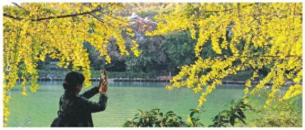11月29日,桂湖景区的银杏树悄然换上“金装”,金黄的叶片在阳光映照下熠熠生辉,与周围的景致形成一幅层次分明、韵味十足的画卷,吸引游人拍照打卡。