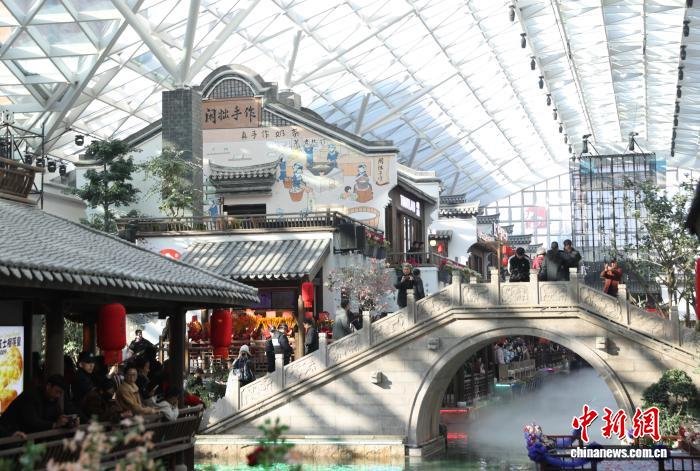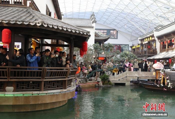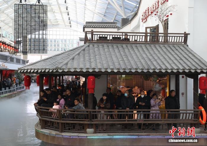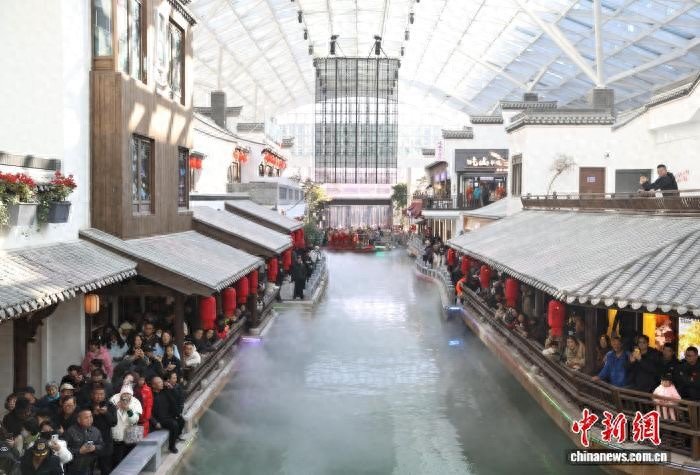 12月6日,西北地区首座四季恒温沉浸式江南主题街区——“银川江南水街”在银川市兴庆区正式开街。据了解,该街区以近1.4万平方米的恒温空间,将江南意境与名品零售有机结合,打造“购物+微度假”的全天候体验闭环,进一步推动了本地文商旅融合业态的升级,助力构建更具吸引力与竞争力的商业集群。图为市民在“银川江南水街”内参观游览。中新社记者 于晶 摄