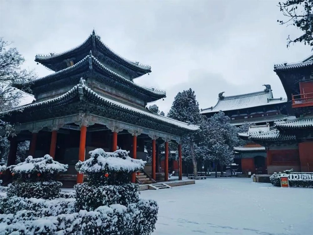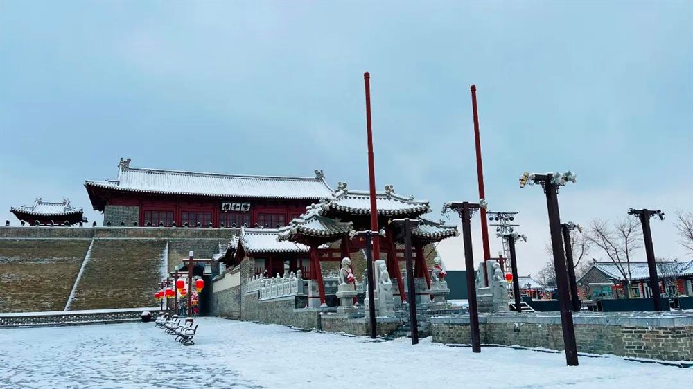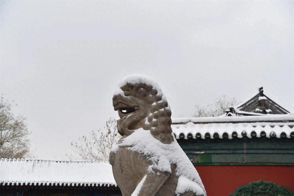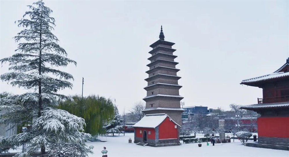 正定古城,雪抚古寺