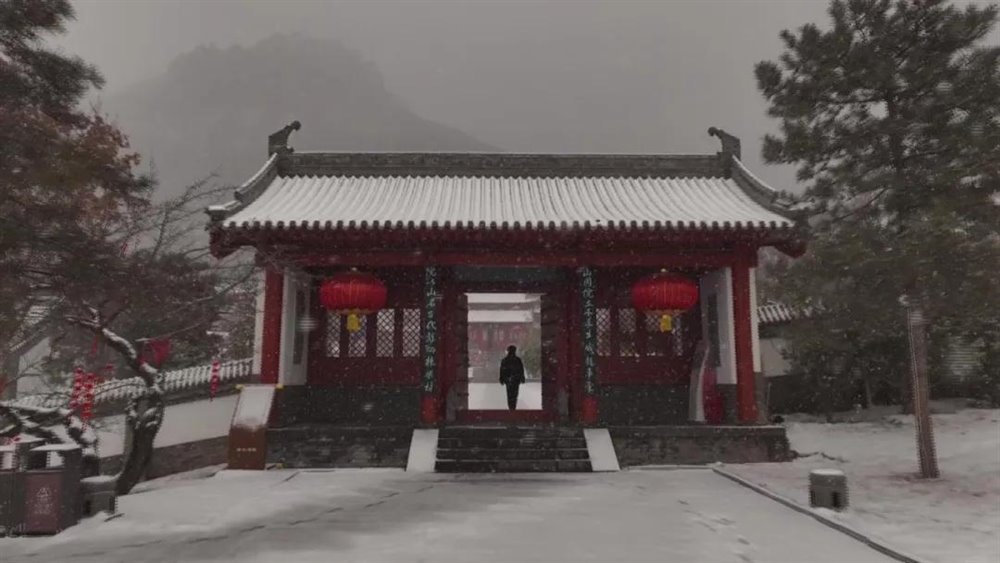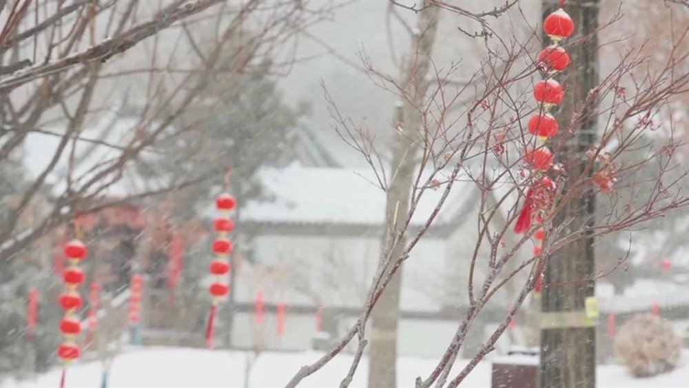 红墙黛瓦在素白映衬下