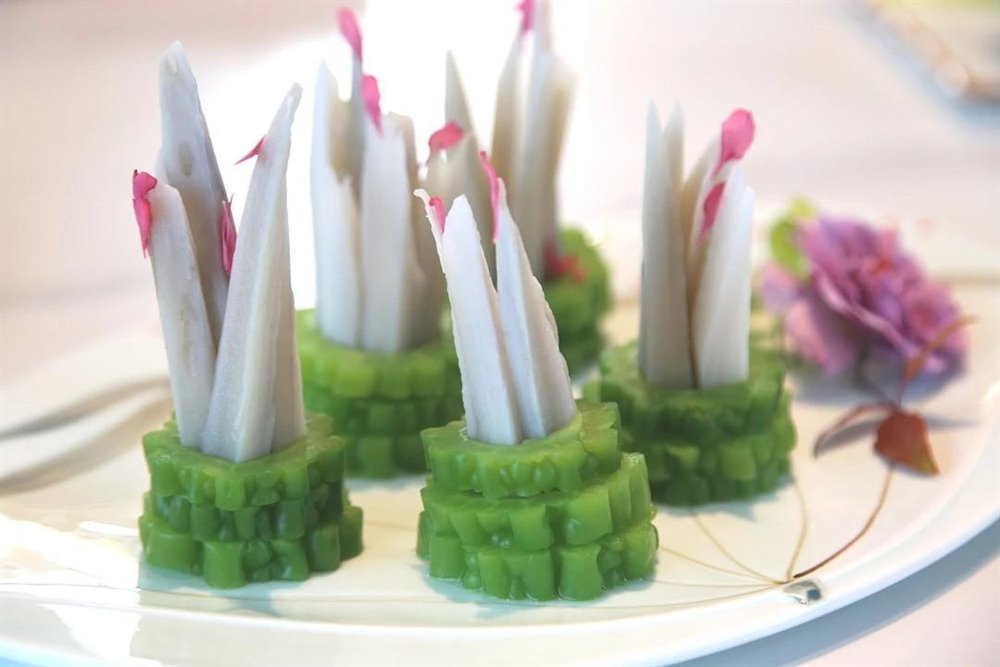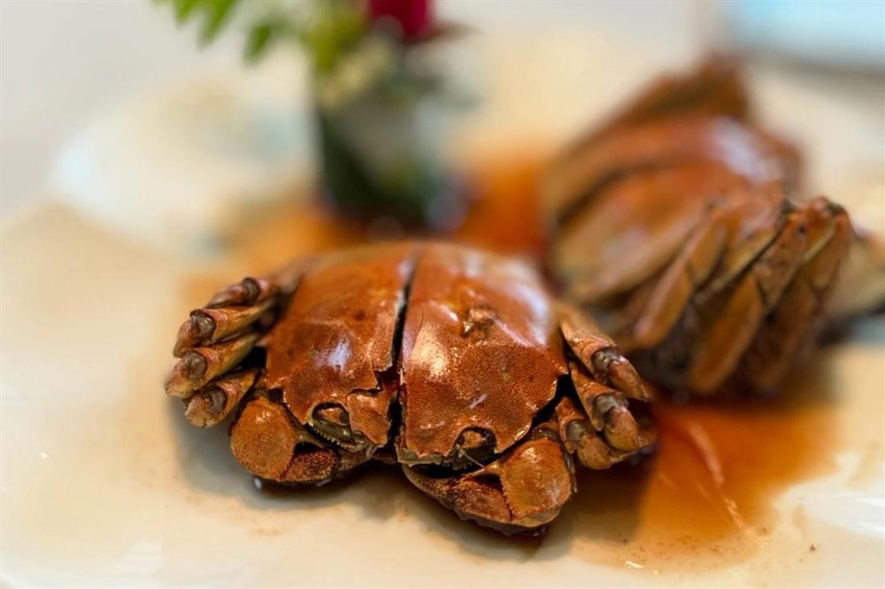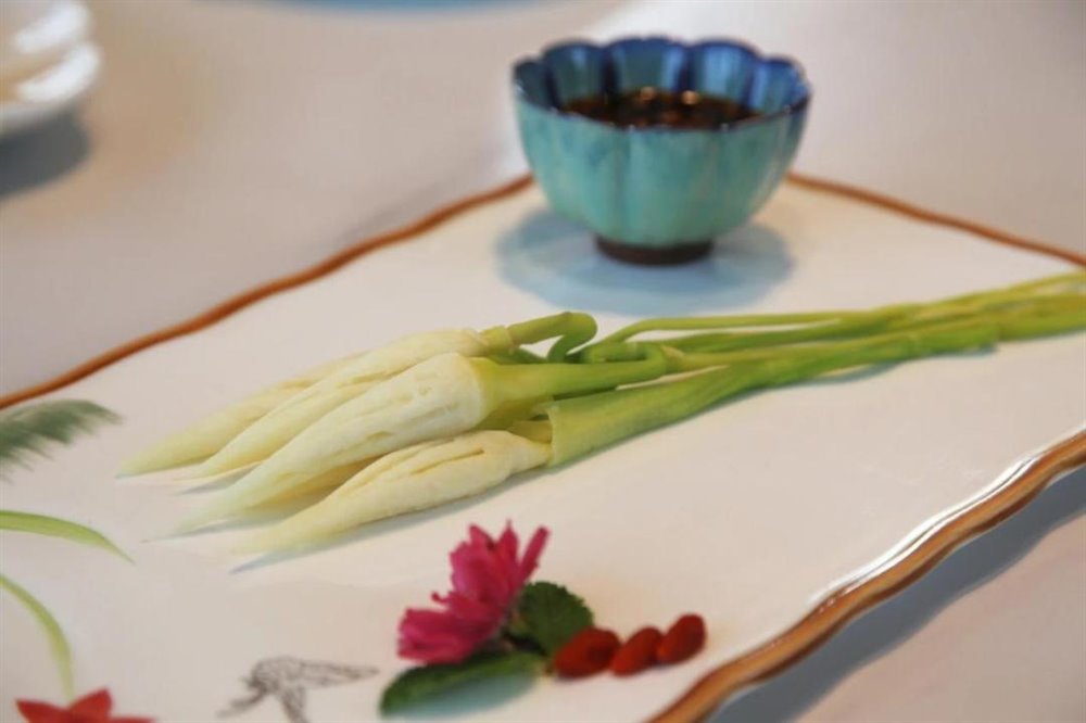 坐定后翻开菜单,会发现这里的菜很有想法。简单说,这里的体验不只是“吃饭”,更像一场以莲湖风物为主题的在地风味探索。比如,你可能会吃到茭白刺身,也可能尝到用蛙稻米做的、带着荷叶清香的饭团或点心。就连“桃花”也不仅仅是店名,可能会化成一道甜品或特饮的灵感。