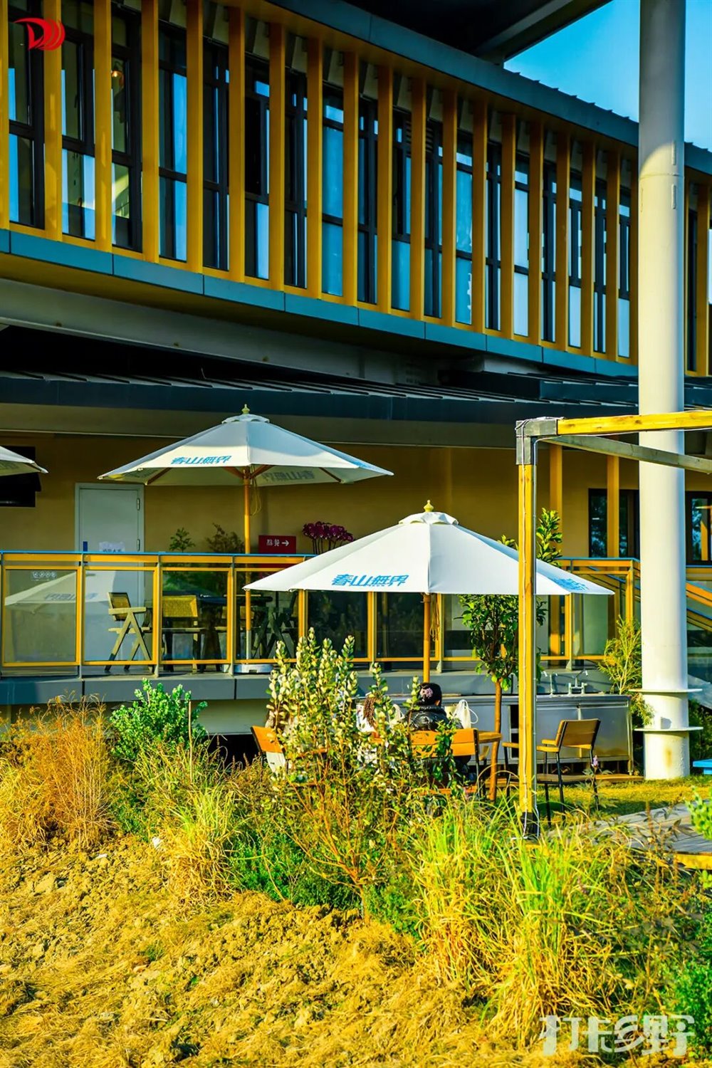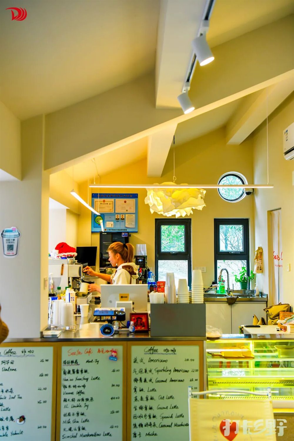 如果荷田水铺是中式暖意,那Seeya Cafe则带来了一阵清新的“济州岛海风”。这座白色的独栋小屋,外观简约,门口随意摆放着几张露营椅和帆布躺椅。