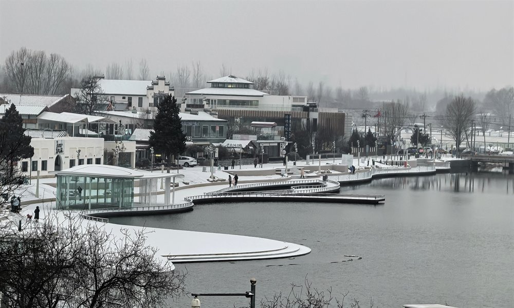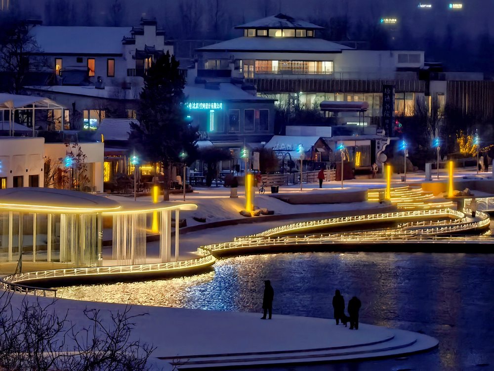 经过长达7个月的升级改造,顺义区后沙峪镇的罗马湖近日以全新面貌正式开放。随着夜幕降临,新增设的夜景照明搭配皑皑白雪,整片湖区在夜色中散发出别样魅力。