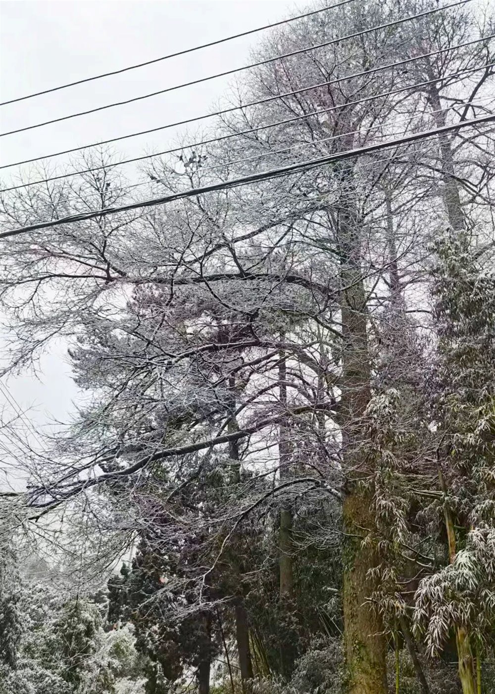 林家塘的金钱松裹上白雪