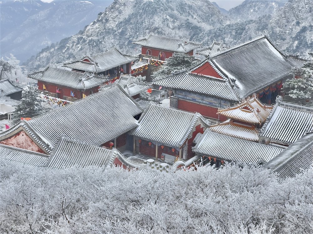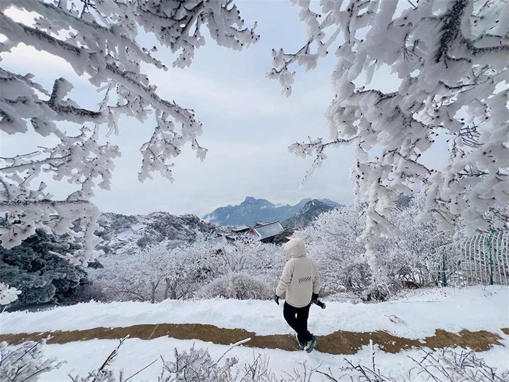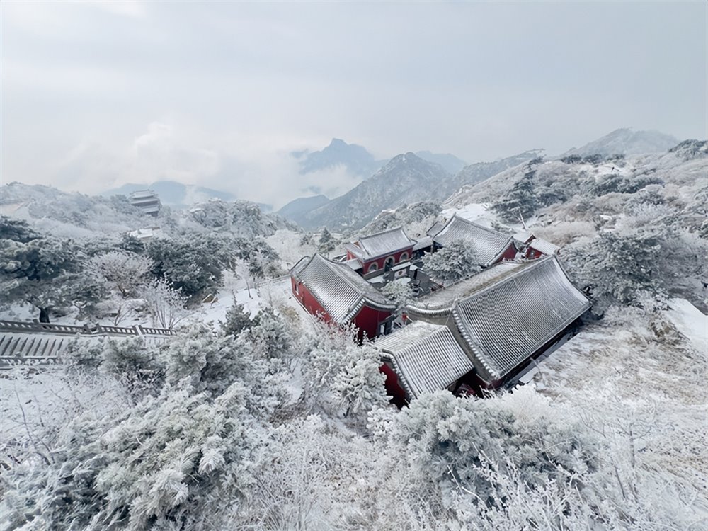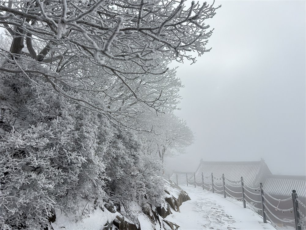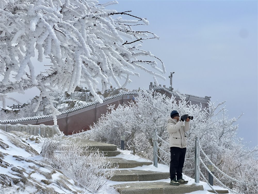 泰山晚报讯 12月23日,雪后的泰山宛如冰雪童话世界。山间树木挂满雾凇,琼枝玉叶晶莹剔透,与红墙黛瓦的古建筑相映成趣,石阶古道覆着薄雪,一步一景皆成诗。