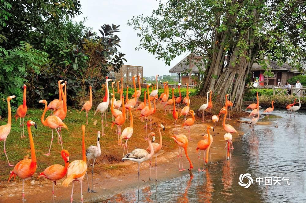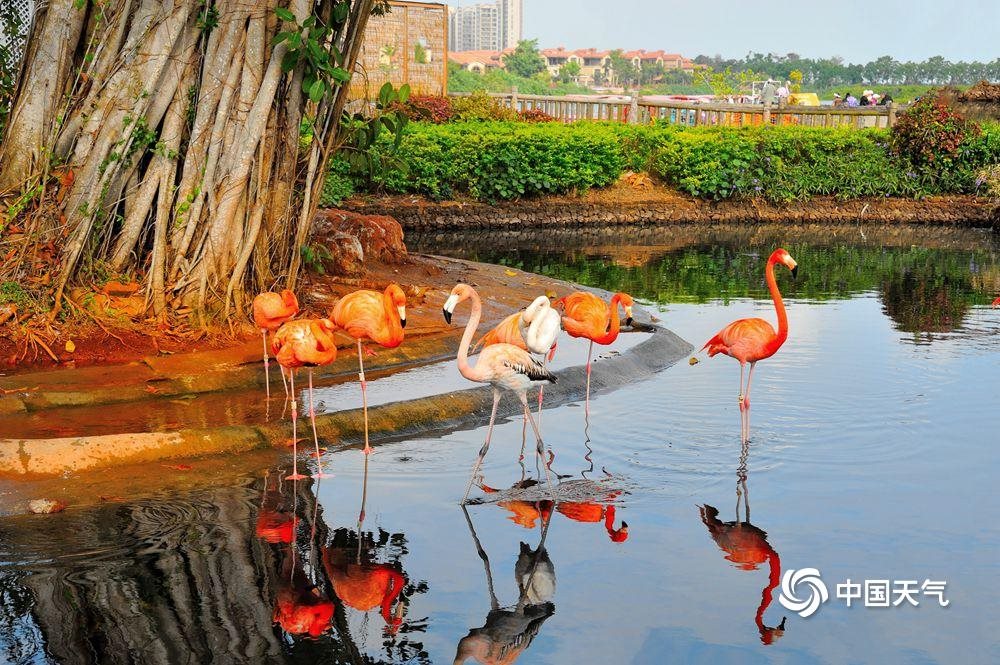 中国天气网讯 1月20日,海南澄迈天气温暖舒适,红树湾湿地公园内的火烈鸟悠闲觅食、漫步,姿态优美,吸引游客驻足观赏。(图/黎新民)