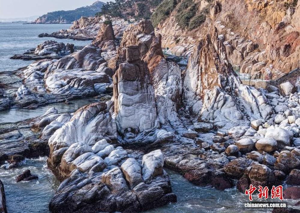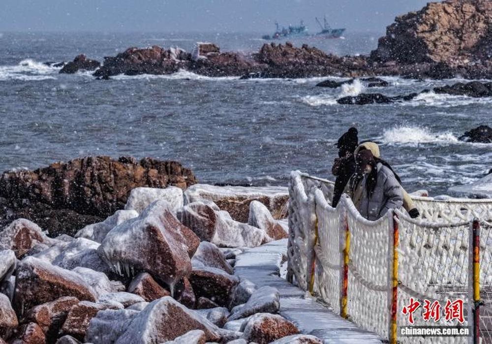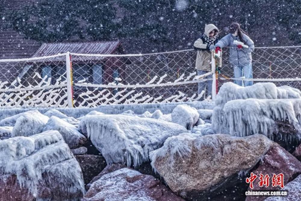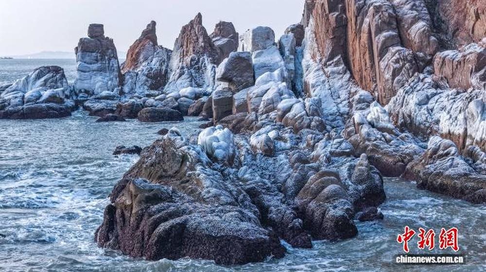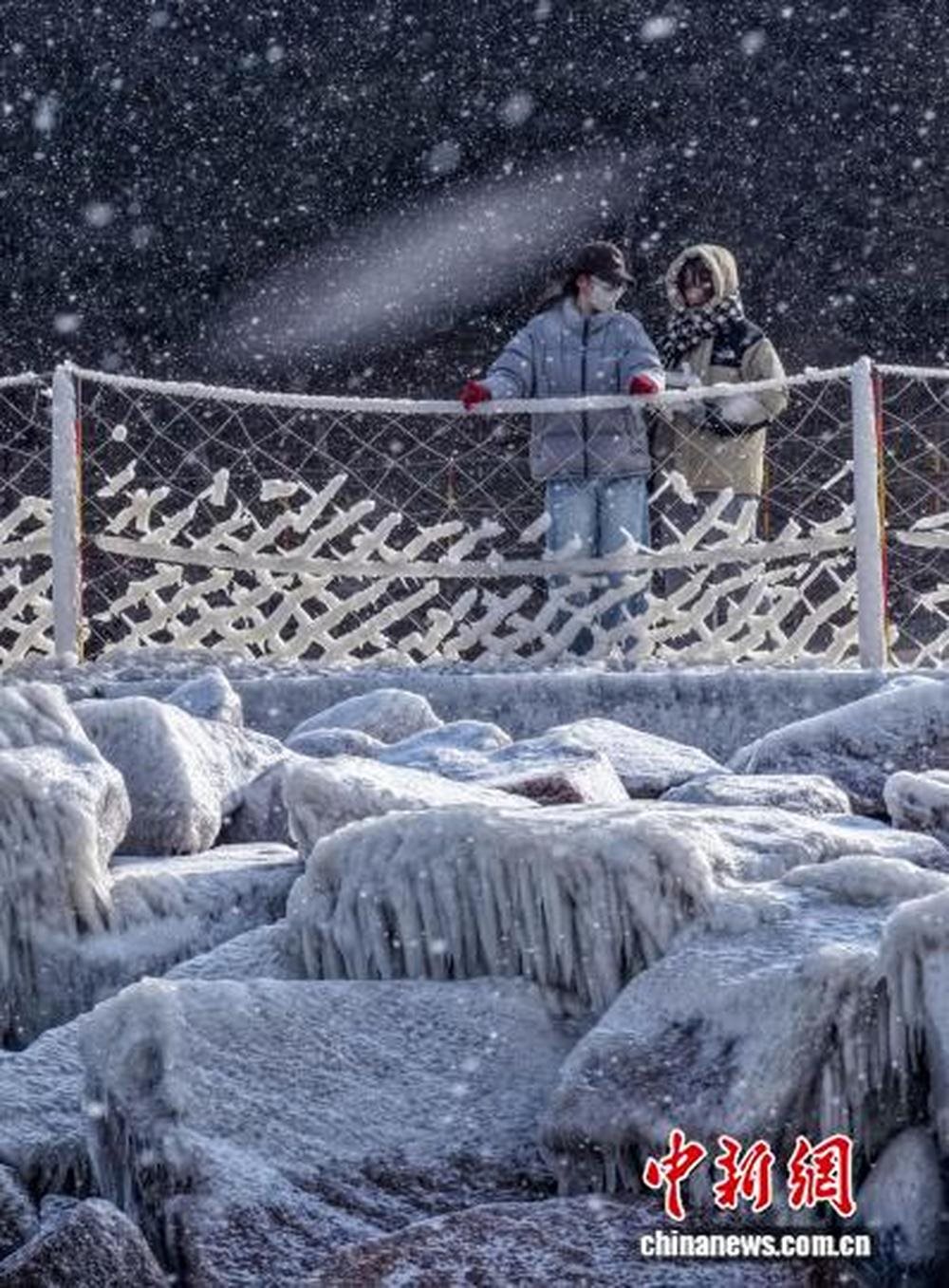 1月22日,山东荣成成山头景区,海浪溅起的水花在低温中凝结成冰挂、冰凌,与礁石相映成趣,勾勒出冬日海岸的独特景致。近年来,当地挖掘滨海冬季旅游资源,打造特色旅游项目。