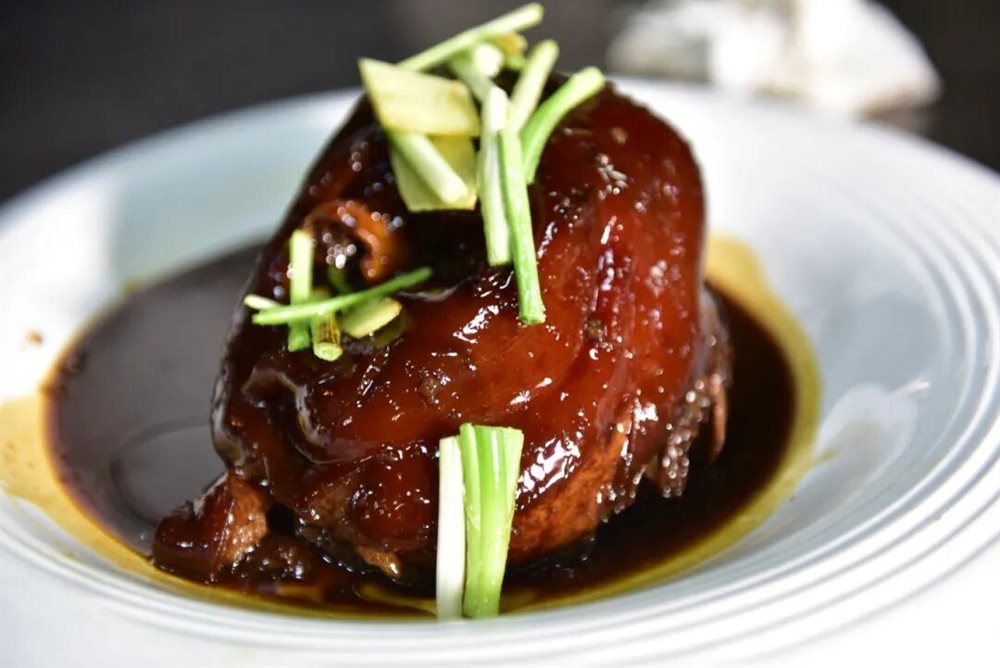 研学之旅的最后一站,以一道浓香油润的崇贤蹄髈收尾。崇贤蹄髈烹饪技艺2022年入选杭州市非遗名录,百年流传间,早已成为当地人“无蹄髈不成席”的待客礼仪。