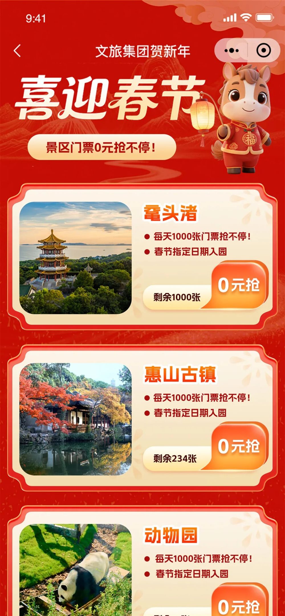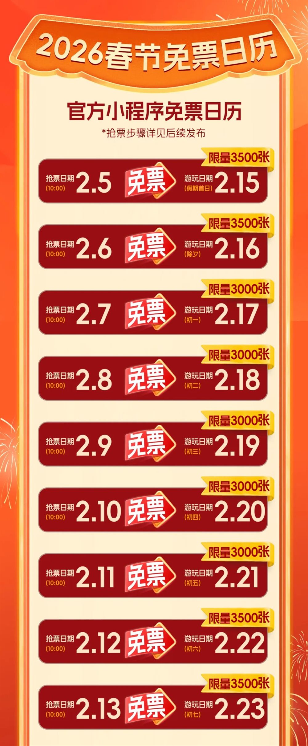 每个景区每日限量1000张0元门票,抢票时需准确填写真实身份信息(姓名、手机号、身份证号),身份信息填写错误将导致无法入园。