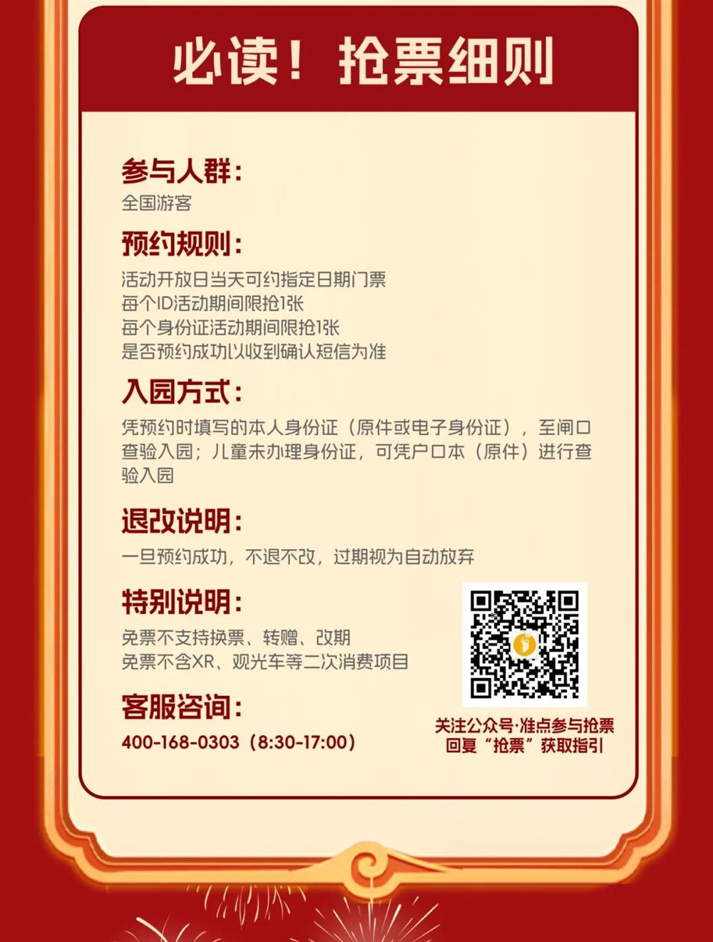 3. 门票属性:本次活动门票为0元公益回馈票,仅限本人使用,不可转让、赠与他人,不可售卖,一经发现违规使用,景区有权拒绝入园。