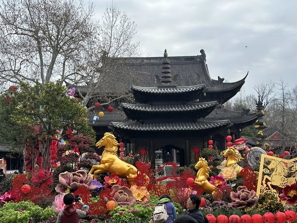 在马年新春之际,钱王祠以“陌上花开迎春归”为迎春花展品牌,以“一马当先万象新”为主题,设计新颖、精巧的室外园林小品, 加上喜庆丰富的环境布置,结合室内精品花卉展陈,室外广场融入商业业态及互动活动,让新春时节来钱王祠的游客不仅能重温吴越国的历史,也能感受到浓浓的“宋韵新年氛围”。