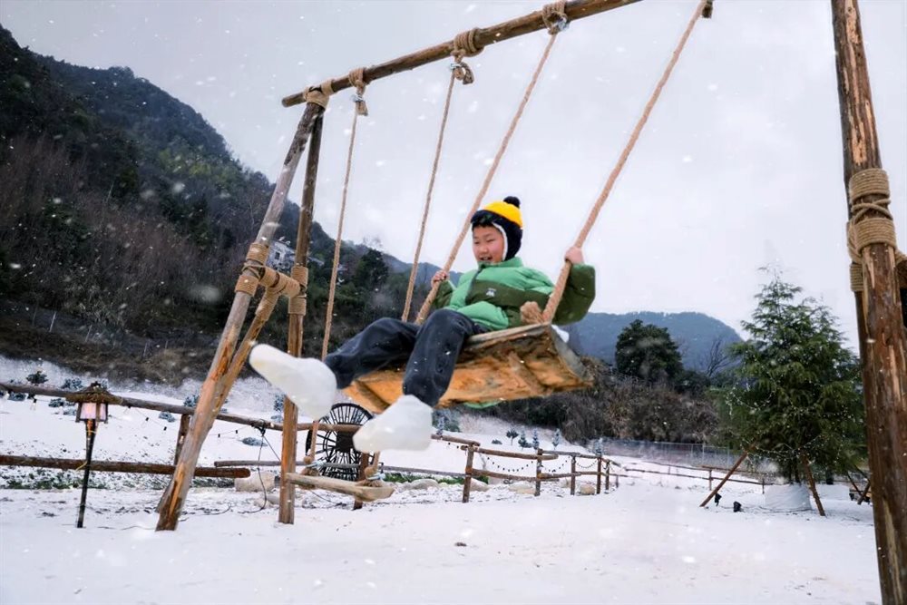无需远赴北方,在家门口就能邂逅“冰雪”美景!金华山趣野集・龙龙岛推出“雪人节”,复刻川西风情雪境,打造沉浸式“冰雪”体验。