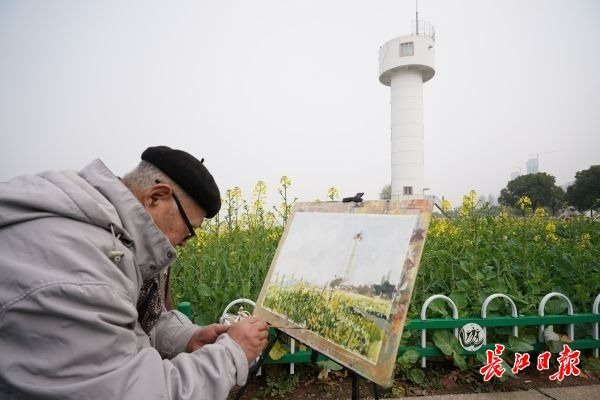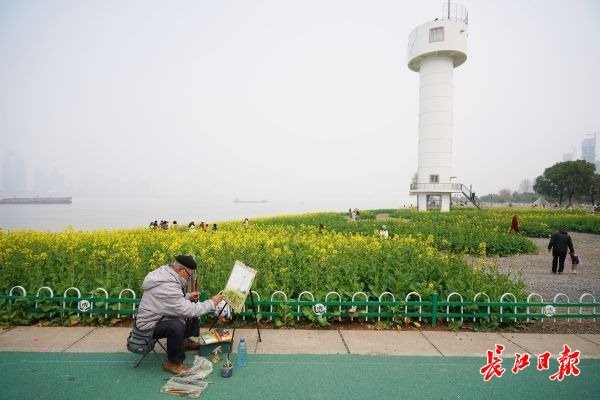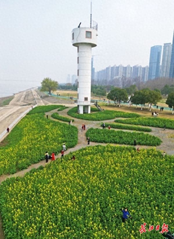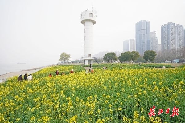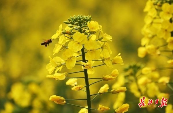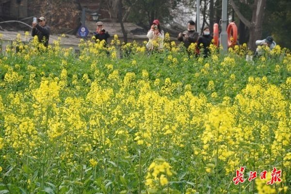 3月4日,洪山区铁机路江滩的油菜花田景观已经花开大半,众多游客和市民纷纷来到这里游玩。黄灿灿的油菜花在阳光下显得生机勃勃,蜜蜂在花朵间授粉采蜜,让来到这里游玩的游客感受到春天气息。