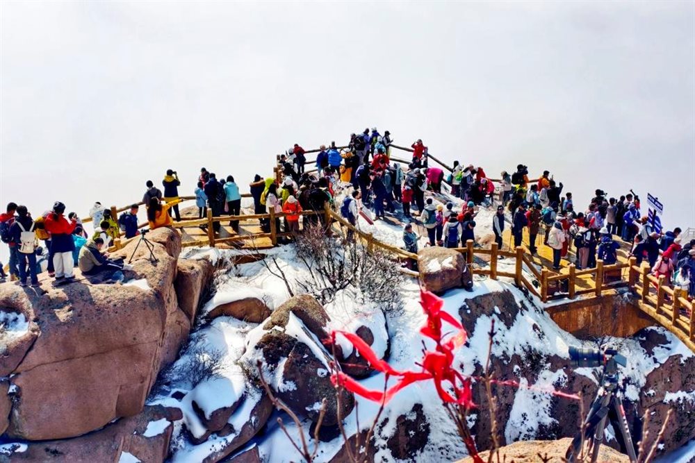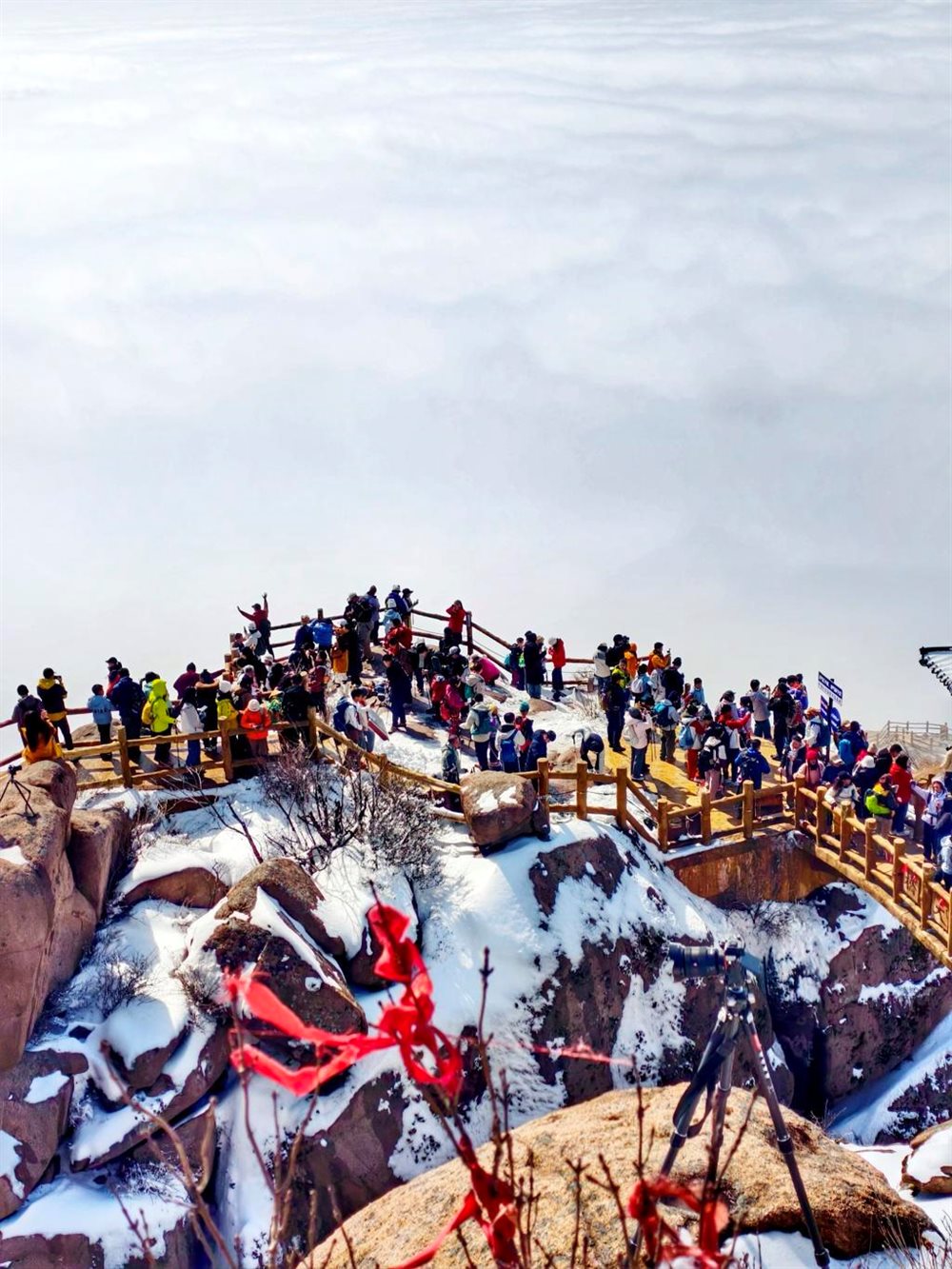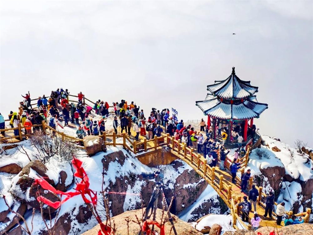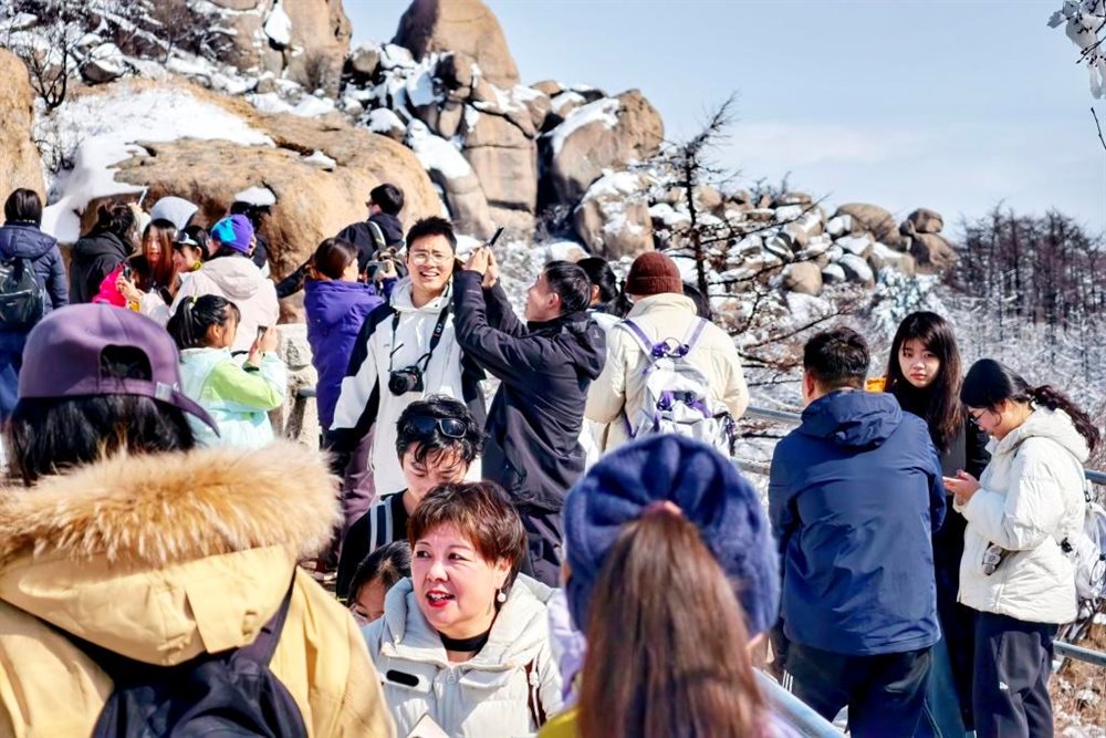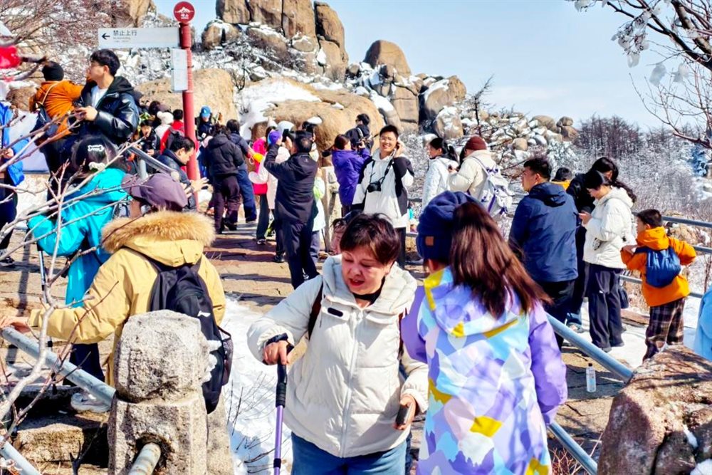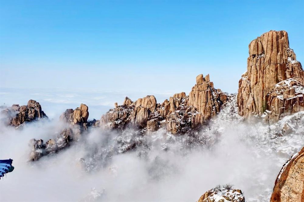 3月3日,一场春雪过后,崂山巨峰景区上演了令人屏息的自然奇观——浩瀚云海与皑皑白雪同时“登场”,将“海上第一名山”装扮成如梦似幻的琉璃世界。