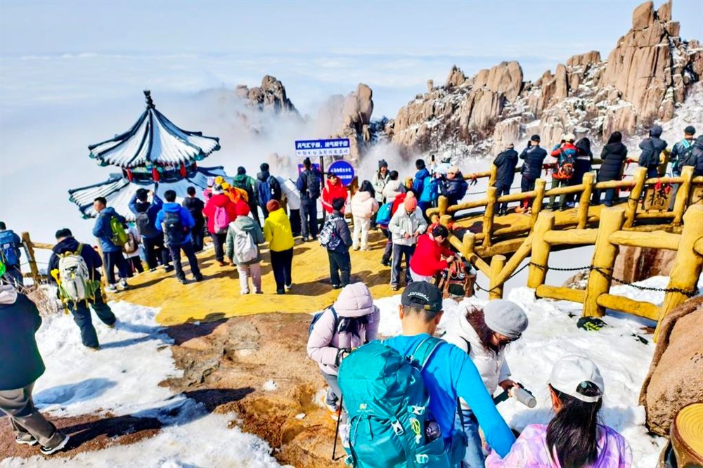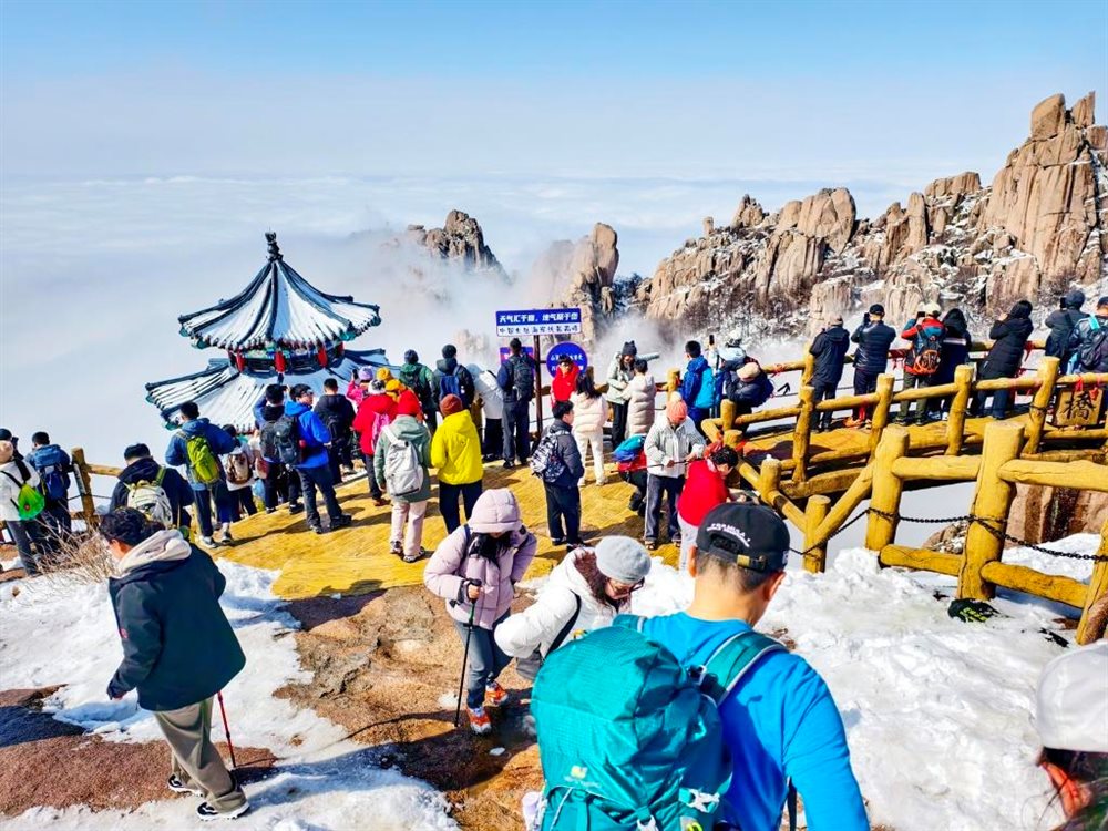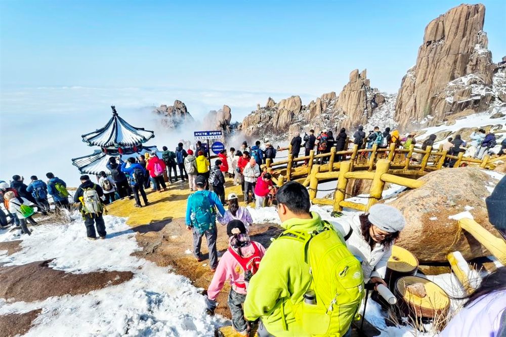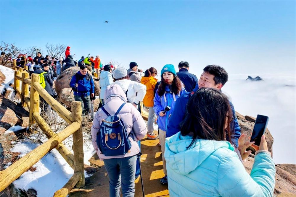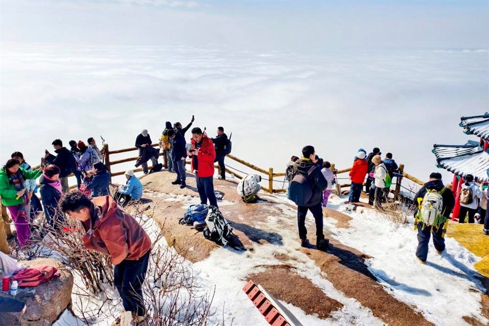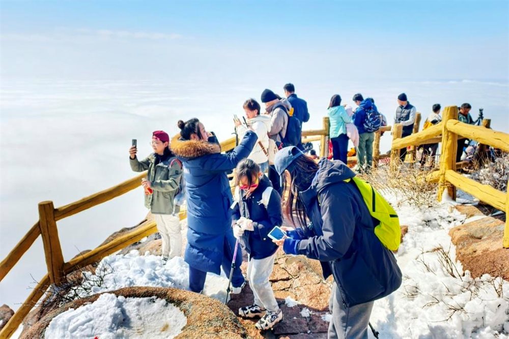 3月3日,一场春雪过后,崂山巨峰景区上演了令人屏息的自然奇观——浩瀚云海与皑皑白雪同时“登场”,将“海上第一名山”装扮成如梦似幻的琉璃世界。