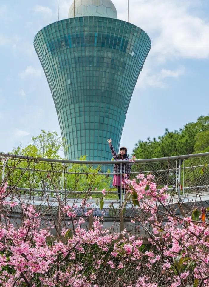 来看樱花,登明珠塔