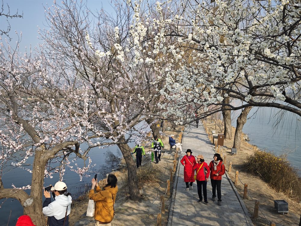 3月16日,颐和园西堤数百株山桃盛开,粉嫩花蕾缀满枝头,与岸边绦柳的新绿相映成趣,勾勒出一幅醉人的“桃红柳绿”春日画卷。漫步长堤,仿佛穿行在一片粉色烟霞之中,花枝轻垂探水,与湖光山色交相辉映。碧水如镜,繁花似锦,一步一景皆是诗情画意,让人流连忘返,沉醉在京城最美的春光里。