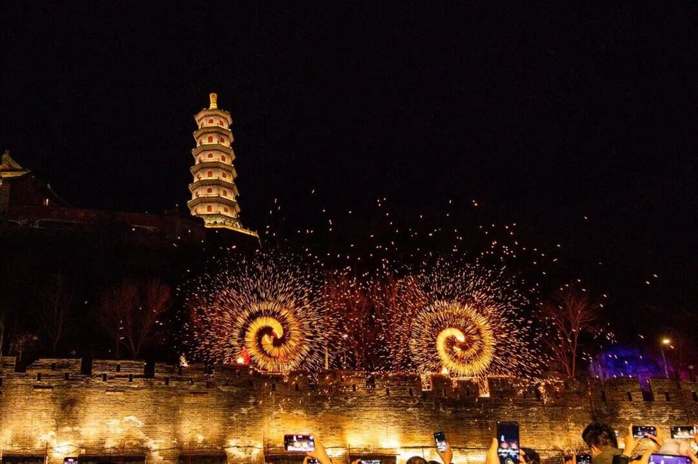 夜色渐深,古塔铁花秀惊艳登场