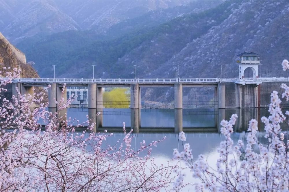 水关长城被杏花温柔包裹