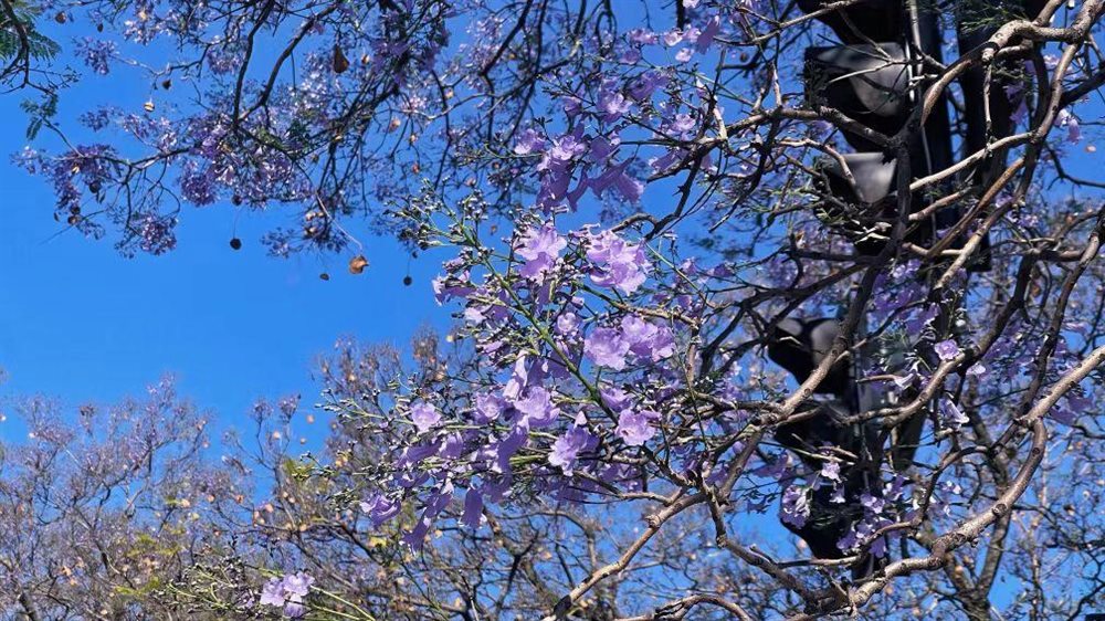 今年蓝花楹盛花期预计在4月20日左右,持续至5月上旬。