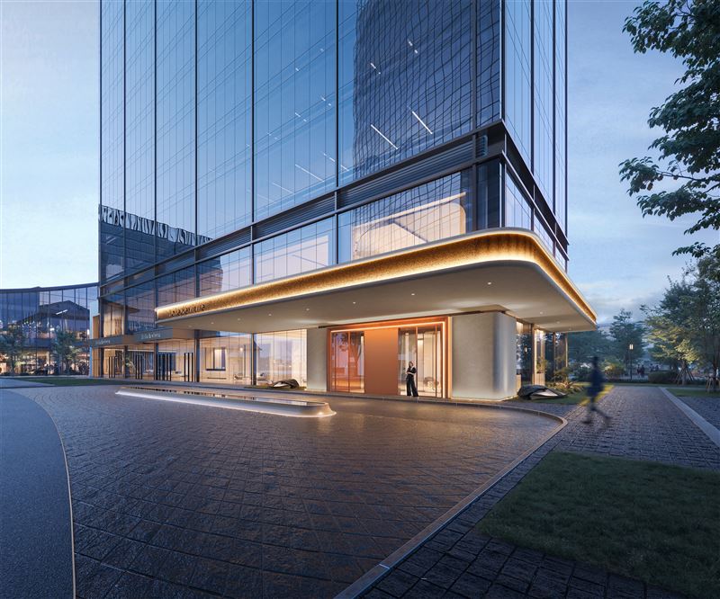全景大落地窗户夜景很繁华