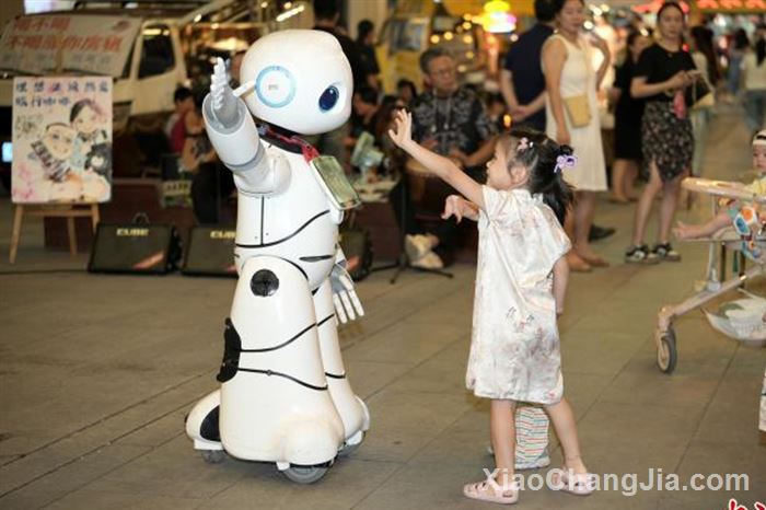 活动现场,AI机器人成为亮点。机器人随音乐起舞,并与孩子们击掌、比心互动,为怀旧主题注入科技温度。