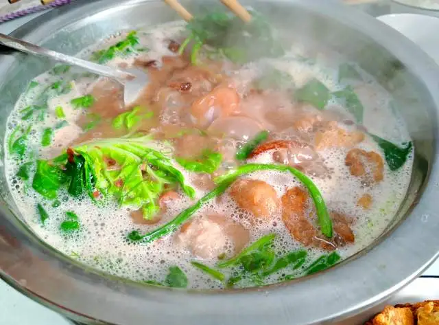 豆豉火锅是贵州比较常规的火锅品种。随便走一家火锅店,都会看到有清汤、酸汤、麻辣以及豆豉火锅四种类型(底汤)。豆豉火锅以发酵豆豉为核心原料,通过豆豉自然咸味替代食盐。火锅吃到最后,豆豉被煮得十分粘稠,喝起来如粥,十分开胃。豆豉火锅起源于贵州西北一带,目前在全省各地都比较盛行。