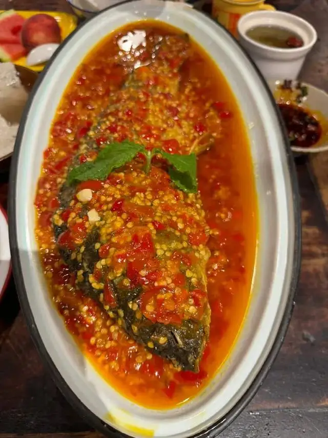 糟辣鱼,是贵州最为常规的烹饪鱼的美食。糟辣鱼的调料基本就是贵州本地家家户户都有的糟辣椒。主要的方法是现将鱼经油炸定型后,然后再将炒制后的糟辣椒、姜蒜等调料放上焖烧入味,成品呈现金红色泽与酸辣鲜香的复合味型,肉质鲜嫩软糯。2010年,被贵州省文化和旅游厅列为黔菜代表性菜肴。